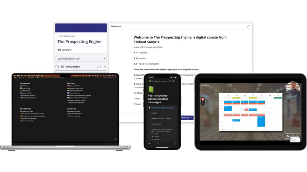 The Prospecting Engine is the ultimate knowledge and systems to start conversations, book meetings, and generate a healthy pipeline in 2024 and beyond. It’s the system I follow every day to reach a 46.45% reply rate, and a 27% meeting rate.